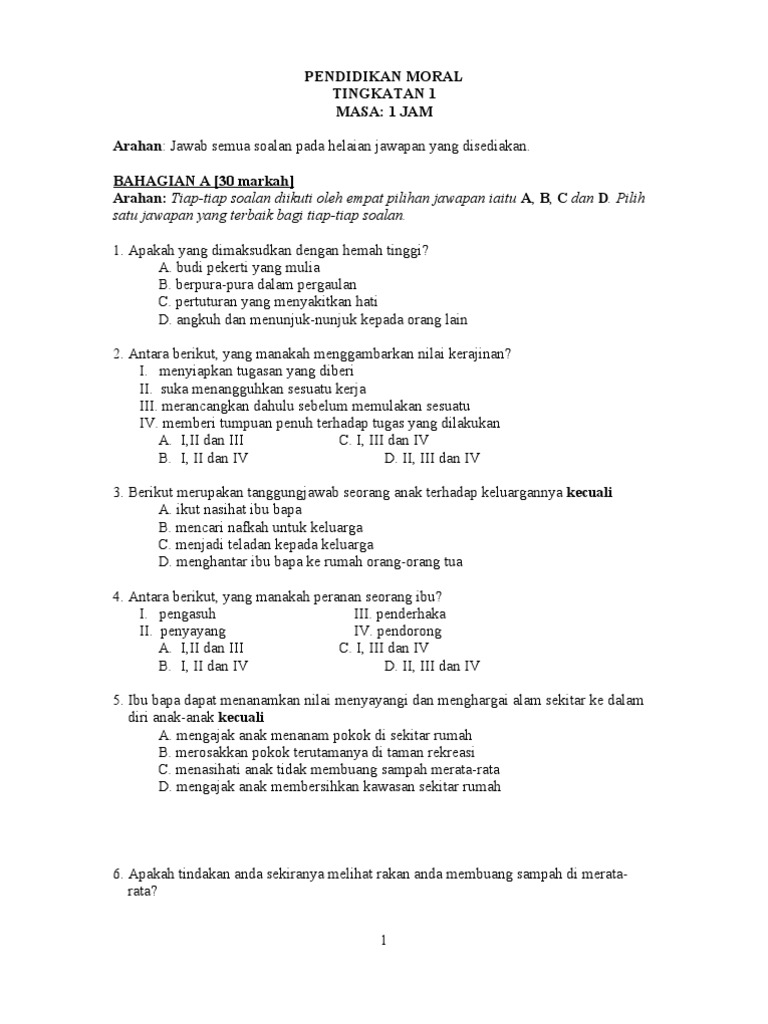 Contoh Ujian Pendidikan Moral Ting 1 Pdf
